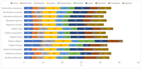 | Diaphus | 13.3–21.4 | 1979, 2009, 2012 | [46,52,63,65,66] | |