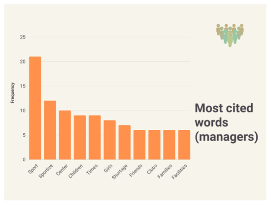 Finally, sports managers highlight sports, centers, and children, with the concept of shortage also having relevance, which only appears in this category (Figure 7).