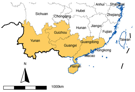 The training and testing set for the random forest model consisted of the data from 2015, while the data from 2016 were used as the validation set. These 61 power grids are situated in five southern China provinces: Guangdong, Guangxi, Yunnan, Guizhou, and Hainan. The geographical locations of these power grids are depicted as the yellow area in Figure 6.
