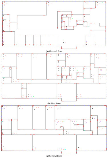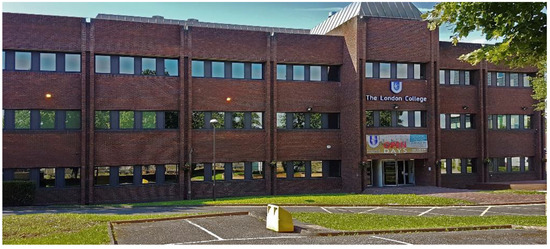 The London College (see Figure 1) is a three-level building located in Greater London. The floor heights of the building on each level differ, with the ground and first floors measuring 3.6 m and the second floor measuring 3.15 m, including the plenums. The plant room is located above the second floor, where an air handling unit (AHU) operates with 100% outdoor air providing ventilation to the entire building. Each room is equipped with supply and return diffusers. The building maintains a total ventilation rate of 10,000 m3/h, which remains active all the time.