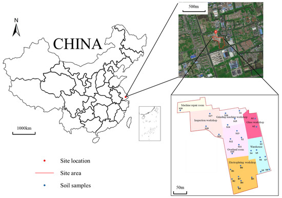 The rapid increase in urbanization and industrial restructuring has resulted in the emergence of a large number of contaminated sites [1]. The legacies of chemical manufacturing accounted for the most significant proportion of these in a recent investigation of 625 industrial areas in China, providing sources of heavy metals including Cr, Pb, Cd, Zn, Ni, and As [2]. As is a widely distributed quasi-metallic element in the environment [3]. Therefore, in the following manuscript, As will be referred to as a heavy metal. Through soil investigation at eight pollution points in five provinces in southeastern China, it was found that Pb, Ni, and Cd were the main pollutants in industrial sites [4]. Coke/chemical processing and oxygen production in steel plants lead to Pb, Cd and Hg pollution [5]. In the electroplating industry, the production process generates a large amount of Cr pollution [6]. The Yangtze River Delta is the economic center of modern China, accounting for almost a quarter of China’s gross domestic product (GDP), though its land area is less than 2.3% [7]. Therefore, the rational use of land resources in the Yangtze Delta is very important. A large number of electroplating, printing and dyeing, and chemical companies have settled here [8], with electroplating industries having been widespread in this area. Taking Shanghai as an example, approximately 452 electroplating companies were present in the past, with 75% of these having relocated in the past ten years due to industrial renewal and adjustment. As a result, these sites should be reclaimed to mitigate the environmental and health risks associated with heavy metal contamination. On the other hand, in the YRD area, the shallow groundwater table and frequent interaction between the groundwater and soil have increased the diffusion of heavy metals. The nature of heavy metals present plays a crucial role in their mobility and their potential risks in soil, which should be considered during the investigation of contaminated sites [9].