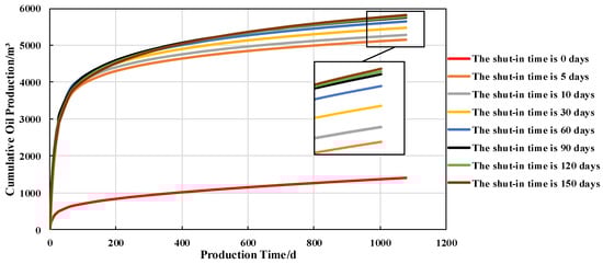 The relationship of cumulative oil production and its increase under different shut-in times.
