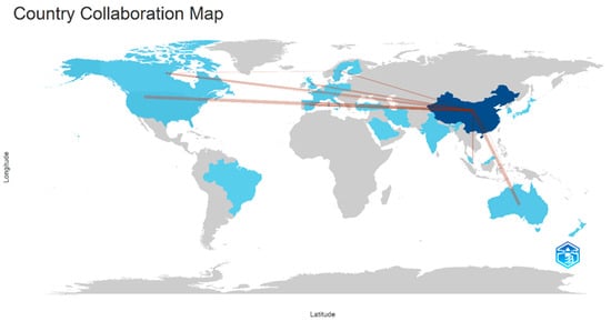 Globally, many countries have been involved in the studies of sustainable fire-resistant polysaccharide-based aerogels. Over the last two decades, the following countries (see Table S5) China, United States, Australia, Canada, India, Sweden, Spain, France, South Korea, and Singapore spanning four continents have engaged in many publications, with China recording the highest number of publications and citations. A world collaboration map analysis (Figure 10 and Table S6) indicates significant collaboration between China and other countries such as Canada, the United States, Spain, Italy, France, Australia, Malaysia, Finland, and Sweden, with China serving as the country from which these collaborations emanate. It is interesting to note the importance of Spain as the mid-point of the collaboration between European countries and authors in the Asia–Pacific region although Sweden boasts of significant publication in this field. On the issue of cross-continent collaborations, key alliances happened between Australia and China and then Hong Kong (though Hong Kong is considered a Special Administrative Region (SAR) of China but regarded as a country by the Biblitex software, V4.0). It is worth noting that Canada collaborates most with the Scandinavian countries (Sweden, Switzerland, and Finland) than its closest neighbors in this field of research. Additionally, the powerhouse, China collaborates more with countries such as Australia, the United States, Canada, and Hong Kong (SAR), with minimal involvement with others such as France, Germany, Singapore, and Italy, to mention a few.