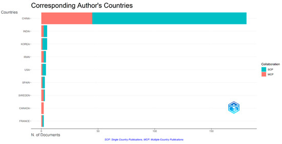 Biblioshiny analysis of corresponding authors from various countries. SCP = Single Country Publications, MCP = Multi Country Publications.