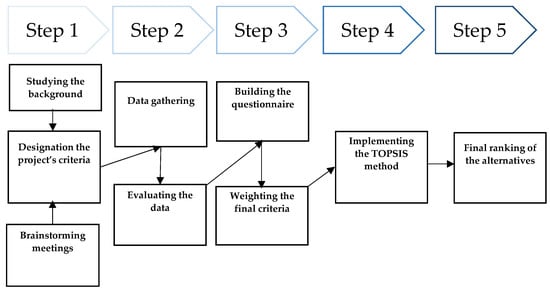 Three standard steps are used in all decision-making processes: data quantification is the first step in the decision-making process, followed by normalization and the right decision-making strategy [36,41]. In this part, the Technique for Order of Preference by Similarity to Ideal Solution (TOPSIS) has been utilized in MATLAB to rank the state of seventeen alternatives while considering the ten presented indications.