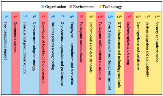 - Step 3: CSF relevance identification. To further identify CSFs’ order of relevance. First, an in-depth interview with D-procurement specialists is designed. After that, the collected data were analysed, and the relevance-based CSF–TOE model was finally proposed.