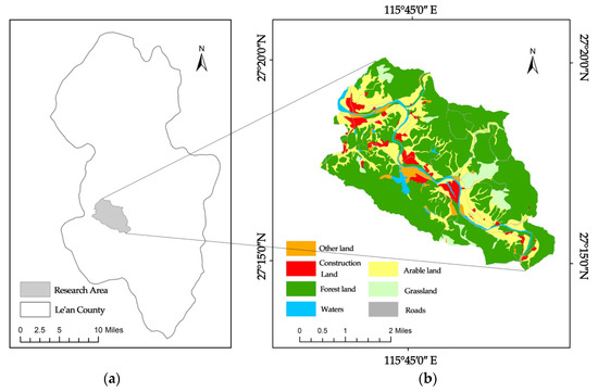(a) Location of the study area; (b) and current land use map.