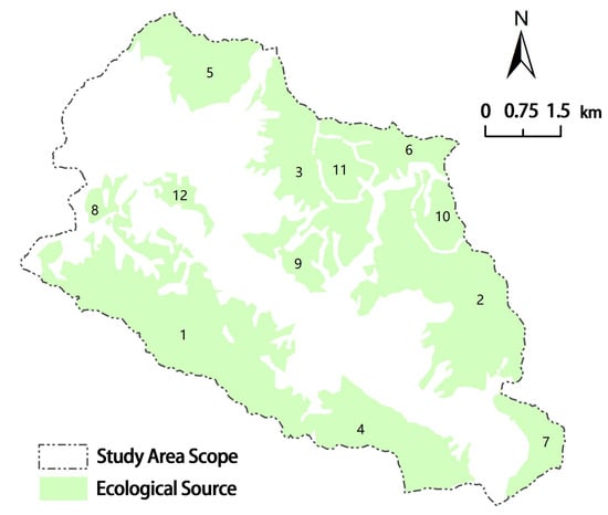 Spatial distribution of ecological source sites in the study area.