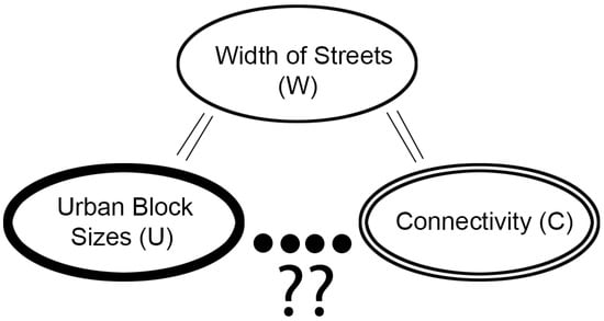 Suppose the street’s width (W) is positively related to urban block sizes (U) (condition 1) as in Table 1, and there is a positive correlation between the street’s width (W) and the urban layout connectivity (C) (condition 2) proven by space syntax. In that case, a mathematical relationship can be presented as, by the transitive property, the size of the urban block (U) and the connectivity (C) should be related similarly. If (U) and (C) were found to be not or negatively correlated in a given sample then it would mean that the sample study designer did not implement one of the two conditions. Either (condition-1) related to law no. 44 or (condition-2) related to Space Syntax Theory (SST) is neglected.