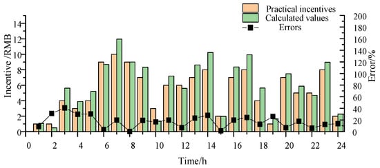 Considering the fluctuations and deviations in user behavior, as well as errors in the critical point due to constraints, there are two main sources of deviation in user incentives and responses: the first type of error comes from the variability of user behavior; the second type of error causes a deviation in the theoretical critical point. Taking into account the response error and constraints of users, Formula (1) is adjusted as follows: