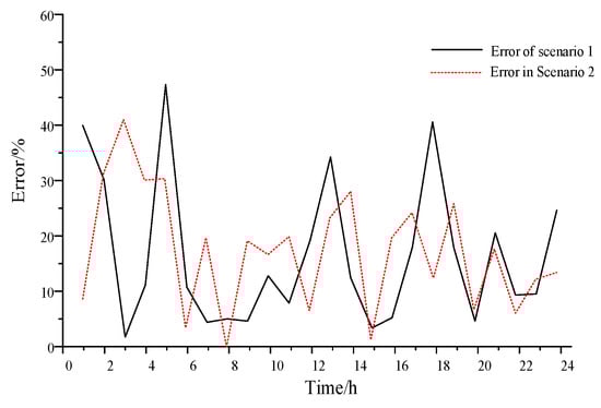 The demand–response incentive formulated by the electricity supplier needs to ensure the required response amount and minimize its own cost. Therefore, according to the analysis of user demand–response cost and incentive in Section 4. The demand–response cost for the electricity supplier is the minimum incentive required for user response in that time period. The incentive required for user in time period t is given by Formula (20). The formation of this model is based on the external characteristics of demand–response and incentives under different scenarios. The incentive varies with time and application scenarios.