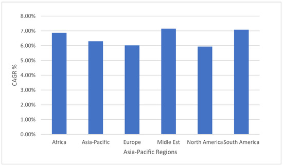 Polyethelene terephthalate (PET) market, CAGR, %, by region, 2023–2029 [14].