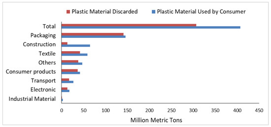 On the other hand, because of its growing consumption and non-biodegradability [5], its waste has increased over the years and poses a severe environmental hazard when discarded after use. PET waste contributes 12% by volume of the world’s solid waste, with its volume increasing at an alarming rate [6,7]. PET waste discarding began to pose severe economic and environmental issues with the upsurge in its amount. Economic, environmental, and energy concerns emphasize the large-scale recycling of PET. PET recycling does not only serve as a partial solution to the substantial PET waste problem, but also subsidizes the energy conservation and raw products of the petrochemical industry [8]. The production and consumption of plastic/packaging/PET materials are directly associated with the generation of plastic/packaging/PET waste.