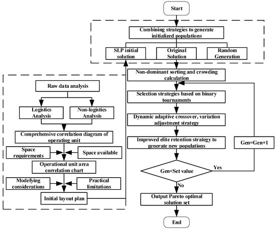 The flowchart of the multi-objective workshop layout algorithm based on the enhanced NSGA-II algorithm is shown in Figure 2.