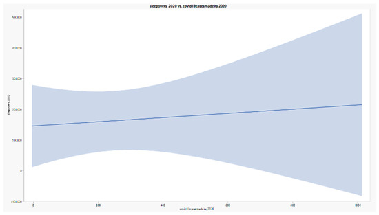 Line of Fit. Sleepover variation by regional infection count.
