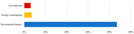 In the last decade, research on quantifying the environmental impacts of AM technologies is increasing. As AM is being adopted in the industry as a manufacturing technology, most of the studies evaluate the impacts of AM compared to CM processes according to different sustainability metrics. Figure 1 shows the percentages of studies by measurement indicators. It is observed that 87% of the studies consider the environmental aspect as a measurement indicator in their analysis, while only 7% consider the energy demand and consumption aspect. Furthermore, very few studies have tackled the economic perspective of AM processes. Ideally, the three dimensions of sustainability include environmental, economic, and social aspects. Therefore, sustainability assessments would preferably take into consideration all three dimensions [37]. The studied environmental indicators are broken down by category in Figure 2. The highest environmental indicator that was investigated in the literature is the global warming potential followed by ozone layer depletion. Also, the three protection areas: human health, resources, and ecosystem endpoints are highly looked at by the literature. The carbon footprint and emissions were investigated by only five studies.