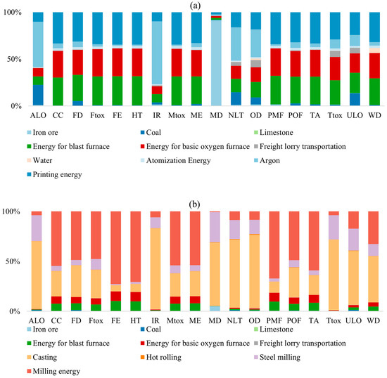 LCA is a standardized technique that helps quantify the environmental impacts associated with a system, product, process, or service over its life cycle [62]. LCA has been used to assess the environmental impacts across various fields including civil constructions, industrial processes, metal AM, and water supply systems [30,63]. LCA has four stages as per ISO 14044 standards which are: goal and scope definition, life cycle inventory analysis, impact assessment, and interpretation of results [23]. The execution of these four stages follows the guidelines of ILCD [64]. Firstly, the goal and scope definition is the stage where the purpose of the study is elaborately defined and described [65]. The life cycle inventory analysis is guided by the goal and scope definition. The core activity of this stage is the collection and compilation of data on elementary flows and processes associated with the studied product system. The output of the compiled inventory is then used as a basis input to the life cycle impact assessment phase in order to translate the inventory information into environmental impact scores [66]. The LCIA phase aims to evaluate the magnitude of the contribution of each elementary flow to an impact on the environment [67]. Finally, the last stage in the LCA process is the interpretation of the results where the results of all phases are interpreted together and analyzed highlighting the uncertainties of the assumptions made and applied data in the study [68].