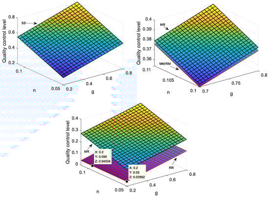 In this section, Propositions 10 and 11 are tested. Quality control is of great significance to the supply chain. While improving the quality control level, supply chain managers should also pay attention to the improvement of the quality control effect to obtain greater benefits. In addition, supply chain managers should also strengthen the publicity of product quality control, improve consumers’ preference and perception regarding product quality control, and then increase the positive impact of quality control on the supply chain.