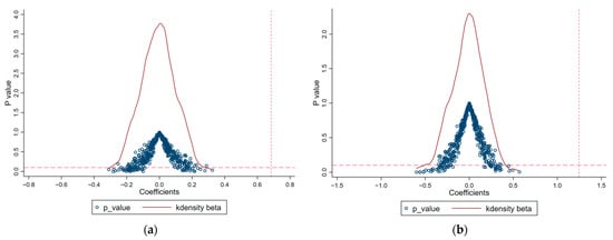 Placebo tests. (a) Placebo test of LninvGpat. (b) Placebo test of LnPatcite.