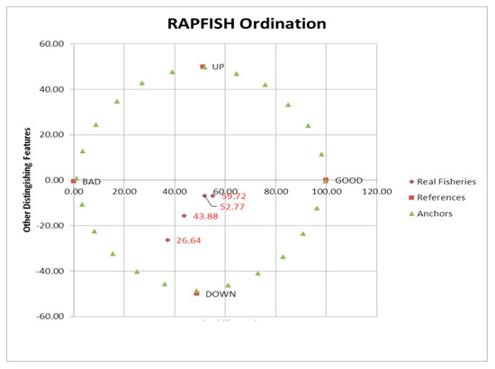 The S-Stress values, both in the multidimensional measurement and in each dimension, were smaller than the threshold value 0.25. The smaller the value is below 0.25, the better it is. Meanwhile, the R2 values in each dimension and the multidimensional analysis were high (close to 1). Therefore, these statistical parameters indicate that all the attributes used in each dimension of the four small agro-industries are sufficient to explain the sustainability of small agro-industries.