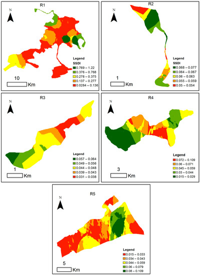 5.2. Calculation of the Sustainable Spatial Development Index for DPSIR Indicators