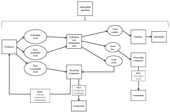 The conceptual framework aims to provide explanation and information as the bases for the suggested joint platform acting as an intermediary to connect all parties involved in the food sector. While it is beyond the scope of our current work to include all application functionality, we will concentrate on showing the workflow of our surplus food recovery and redistribution platform together with information on how public–private collaboration could help in surplus food recovery and redistribution at the national level.