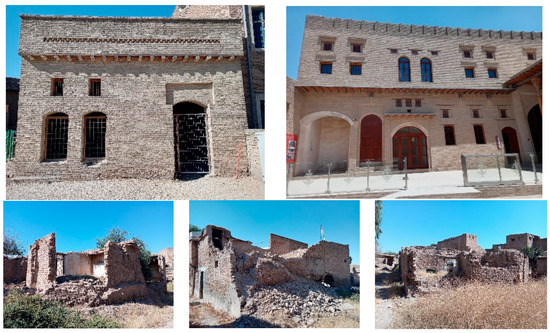 The Erbil Citadel (Figure 4), a World Heritage Property since 2014, is a prime example: 97.5% of its 320 buildings were in critical condition, and this vast harm, according to the nomination document of the Citadel, occurred as a result of a lack of maintenance, as the Citadel’s inhabitants displaced since 2006. Some properties on the Citadel’s main axis (main street) are preserved, while most inner area buildings are in poor condition, and damage can be seen everywhere [56].