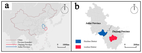 This paper selects Huizhou region in Anhui Province and Wuzhou region in Zhejiang Province of China as the research areas, and the locations of the two regions are shown in Figure 1.