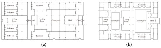 In order to analyze the two schools of dwellings, this paper compared and analyzed the six dwellings in Table 2 one by one according to factors such as typicality and integrity of the dwellings, and finally selected two dwelling cases, Airi Tang and Wuben Tang, for in-depth study. The floor plans of the two dwellings are shown in Figure 2.