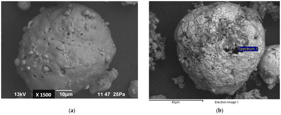 SEM micrograph of fly ash. (a) Morphology, and (b) chemical composition zone.