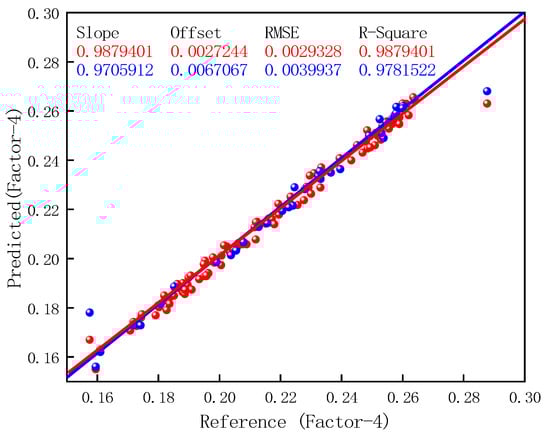 In Equation (3), the higher , the lower the normalization of the sample i, which negatively affects the stability of the model. i was judged as an outlier spectral sample. Therefore, it was necessary to adjust the threshold coefficient “” to adjust the threshold range of the outlier sample.