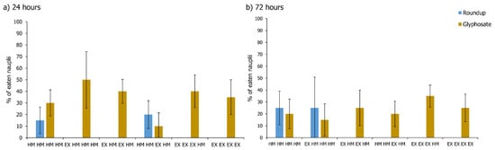 - Cuhra, M.; Traavik, T.; Bøhn, T. Clone- and age-dependent toxicity of a glyphosate commercial formulation and its active ingredient in Daphnia magna. Ecotoxicology 2013, 22, 251–262. [Google Scholar] [CrossRef]