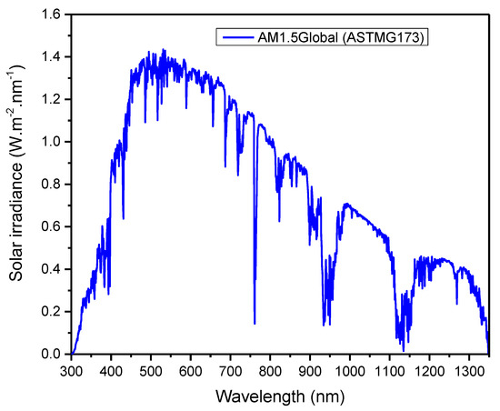 - Reference Air Mass 1.5 Spectra. Available online: https://www.nrel.gov/grid/solar-resource/spectra-am1.5.html (accessed on 21 November 2022).