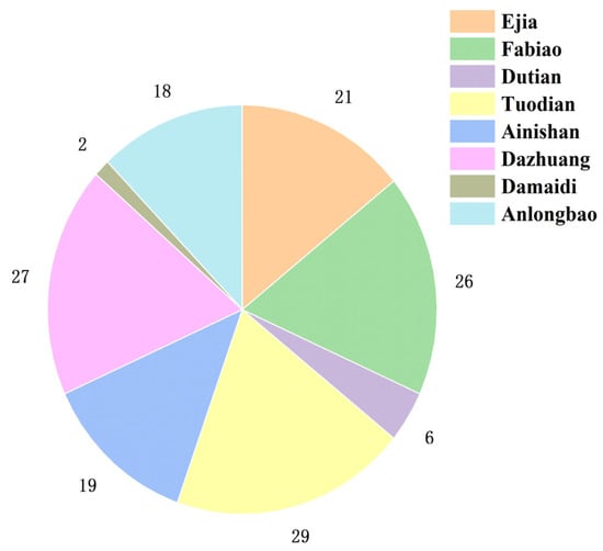 Following the correlation analysis among the variables, 11 index factors were determined for the construction of the landslide susceptibility assessment index system. The corresponding information value for each factor state was subsequently calculated in line with Equation (1). Utilizing the raster calculator, the information values of each factor were superimposed, assigning the total information to each raster. A higher information value signifies a higher likelihood of a landslide occurrence, hence providing a measure of landslide susceptibility. By deploying the natural breakpoint method in ArcGIS, landslide-prone areas were categorized into four groups: less-prone, low-prone, medium-prone, and high-prone, as depicted in Figure 4. This resulted in an information-model-based landslide susceptibility zoning map. The proportion of the total area occupied by each category was found to be: less prone (9.01%), low susceptibility (22.46%), medium susceptibility (37.38%), and high susceptibility (31.15%). High-susceptibility areas were predominantly located in Tuodian Township, Anlongbao Township, the central region of Ejia Township, Faju Township, and Dazhuang Township. Conversely, areas of low susceptibility were primarily situated in the western parts of Ejia Township, and the southern regions of Damaidi Township and Aniyama Township.