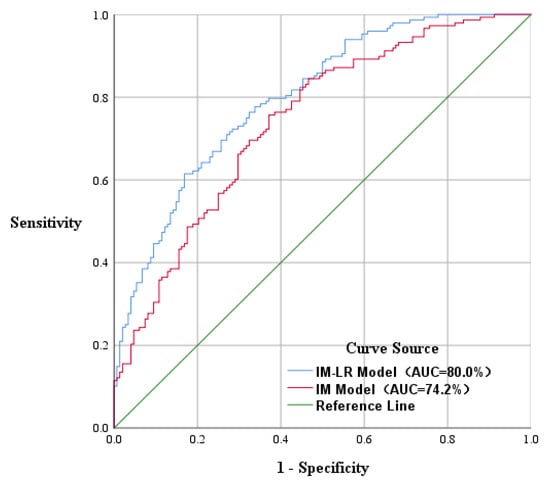 The accuracy (68.2%) and precision (70.3%) of the IM model, calculated from Table 5 and Table 6, are lower than the accuracy (72.3%) and precision (73.6%) of the IM–LR model. Therefore, the IM–LR model is more accurate.