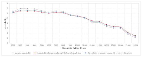 The most significant difference between this study and previous studies is that it does not only test the equity of the two supply capacities but also analyzes the effect of out-of-vehicle time on accessibility in the transit travel chain and assumes two scenarios of changes in out-of-vehicle time.