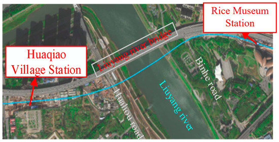 The section of the Changsha Metro’s Line 6 that crosses the Liuyang River is located between Huaqiao Station and the Rice Museum Station. The segment adopts a parallel double-line shield tunnel construction method to cross the Liuyang River. This construction section passes under the Liuyang River from ZCK40 + 750 to ZCK41 + 000. The shield tunnel starts from Huaqiao Station and moves east along the south side of Renmin Road, passes under the Liuyang River and the flood control embankments on both sides, and reaches the Rice Museum Station via the road along the river. Most of the section runs parallel to the Liuyang River–Guitang River Bridge. The left and right lines of the section are two separated single-line tunnels, as shown in Figure 1. The vertical cross sections of the left and right tunnels are “V”-shaped, with a minimum radius of curvature of 400 m. The distance between the left and right lines is 13.2–15.2 m, and the tunnel excavation diameter is 6.2 m. The tunnel depth ranges from 9.2 m to 25.9 m. The water level of the Liuyang River is between 28.0 m and 29.5 m, with an average elevation of 28.68 m. The water depth ranges from 0.90 m to 5.50 m, with an average depth of 3.64 m. The width of the river is about 220 m. The river water and groundwater are mainly supplied to each other through the cobble layer with close hydraulic connection.