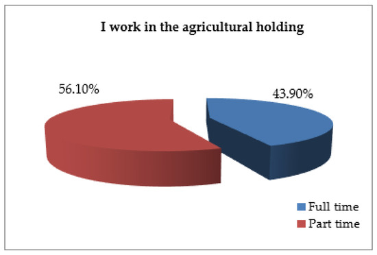 In the sample, the largest percentage of the agricultural producers worked part time (56.10%) in their agricultural holding, while 43.90% of them worked full time in their agricultural holding (Figure 2).