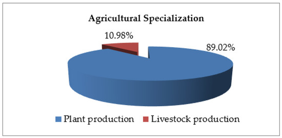 In the sample, the majority of the agricultural producers had the agricultural specialization of plant production (89.02%), and only a few of them specialized in livestock production (10.98%), as shown in Figure 5.