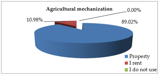 In the sample, the majority of the agricultural producers owned their agricultural mechanization (89.02%), and only a few of them rented their agricultural mechanization (10.98%), as shown in Figure 7.