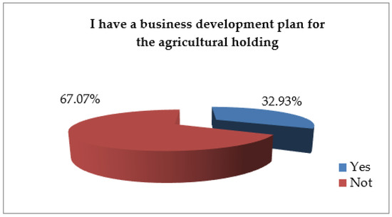 In the sample, the majority of the agricultural producers did not have a business development plan for the agricultural holding (67.07%), with only 32.93% of the agricultural producers possessing a business development plan, as shown in Figure 8.