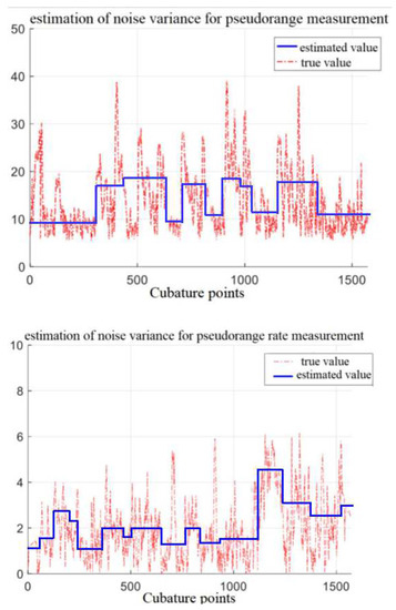 VB–CKF pseudorange and pseudorange rate measure noise variance estimation under the condition of drastic noise variance.