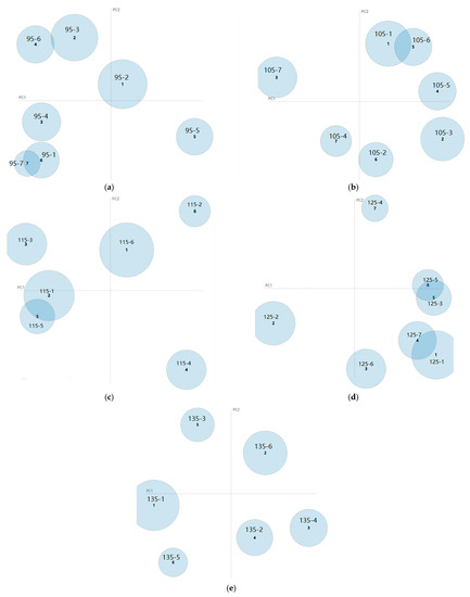 Combined with the LDA topic model to calculate the intensity of each topic [44], this study uses bubble plots to visualize the results. The size of the bubbles indicates the change in intensity of the main topics and is presented on the bubble plots in the order labeled 1–n. The distribution of the hotspots of electricity policy topics in different periods is shown in Figure 3.