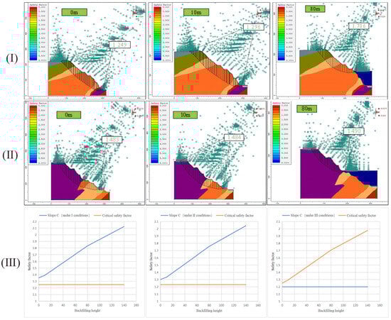In summary, without considering the effect of the seepage field, the stability evaluation conclusions for open-pit slopes with different backfill heights are as follows.