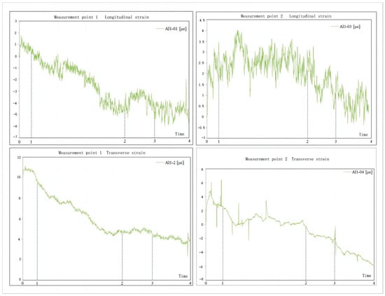 Longitudinal and transverse strains at measuring points 1 and 2.
