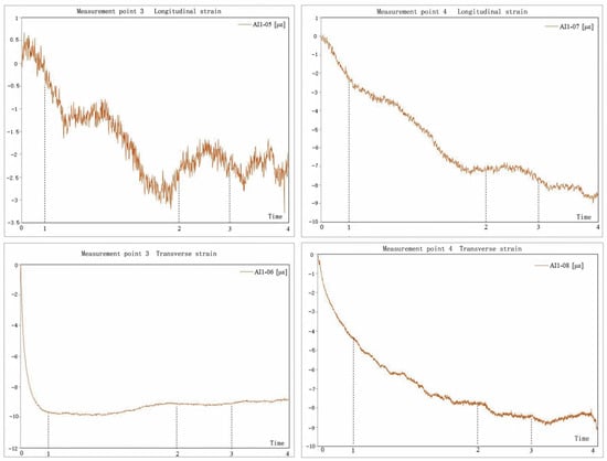 Longitudinal and transverse strains at measuring points 3 and 4.