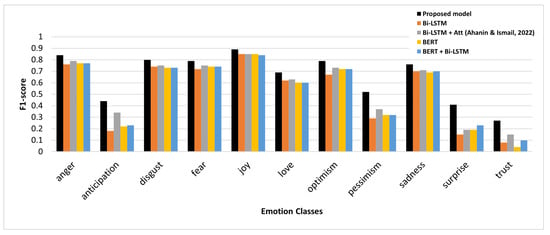 In computer science, the task of understanding emotions has piqued the interest of many researchers, especially in the field of Human–Computer Interactions (HCI). Sentiment and emotion analysis is beneficial for organizations and industries where the potential of customer feedback and queries is recognized as providing a tailored experience based on the customers’ needs. This includes, for example, understanding tourist complaints in the tourism industry [8], or gaining an understanding of public emotions by the government on distributed palliatives during the COVID-19 pandemic [9], or describing the current learning state of students in distance learning applications [10], or identifying emotional barriers toward sustainable behaviors [11]. Detecting the emotions associated with sustainable behaviors can help organizations to design more effective communication strategies that resonate with the emotional responses of people. Similarly, it is useful in social media marketing strategies to influence customers and leverage their businesses. Sentiment and emotion analysis determines an individual’s attitude towards a particular topic, event, product, etc., and it provides valuable insight into the market, which plays a vital role for companies in the decision-making process. Therefore, researchers and companies are always seeking better approaches to solving challenges via understanding of human emotions.