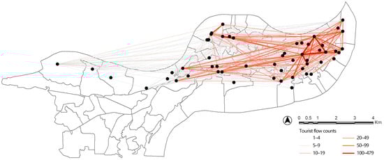 Geographical distribution of tourist flows in Yuzhong District. (Source: the authors).
