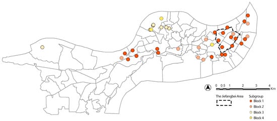 Geographical distribution of tourist flow network blocks in Yuzhong District. (Source: the authors).