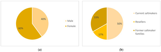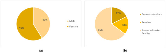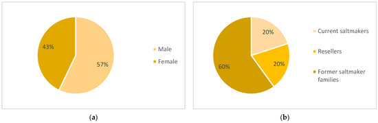(a) Pie diagram of the total percentage of respondents on the second survey. (b) Pie diagram of the relationship of the respondents towards the black salt industry on the second survey.